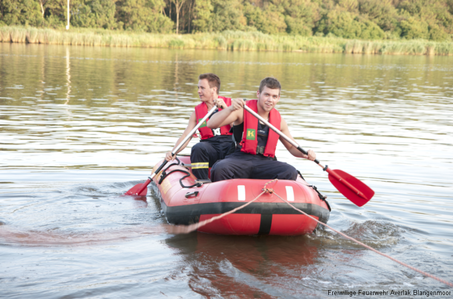 Der heutige Dienstabend wurde genutzt, um den Umgang mit dem Feuerwehrschlauchboot zu üben. Es handelt sich hierbei um ein kleines Schlauchboot mit zwei getrennten Luftkammern und Holzplankenboden.