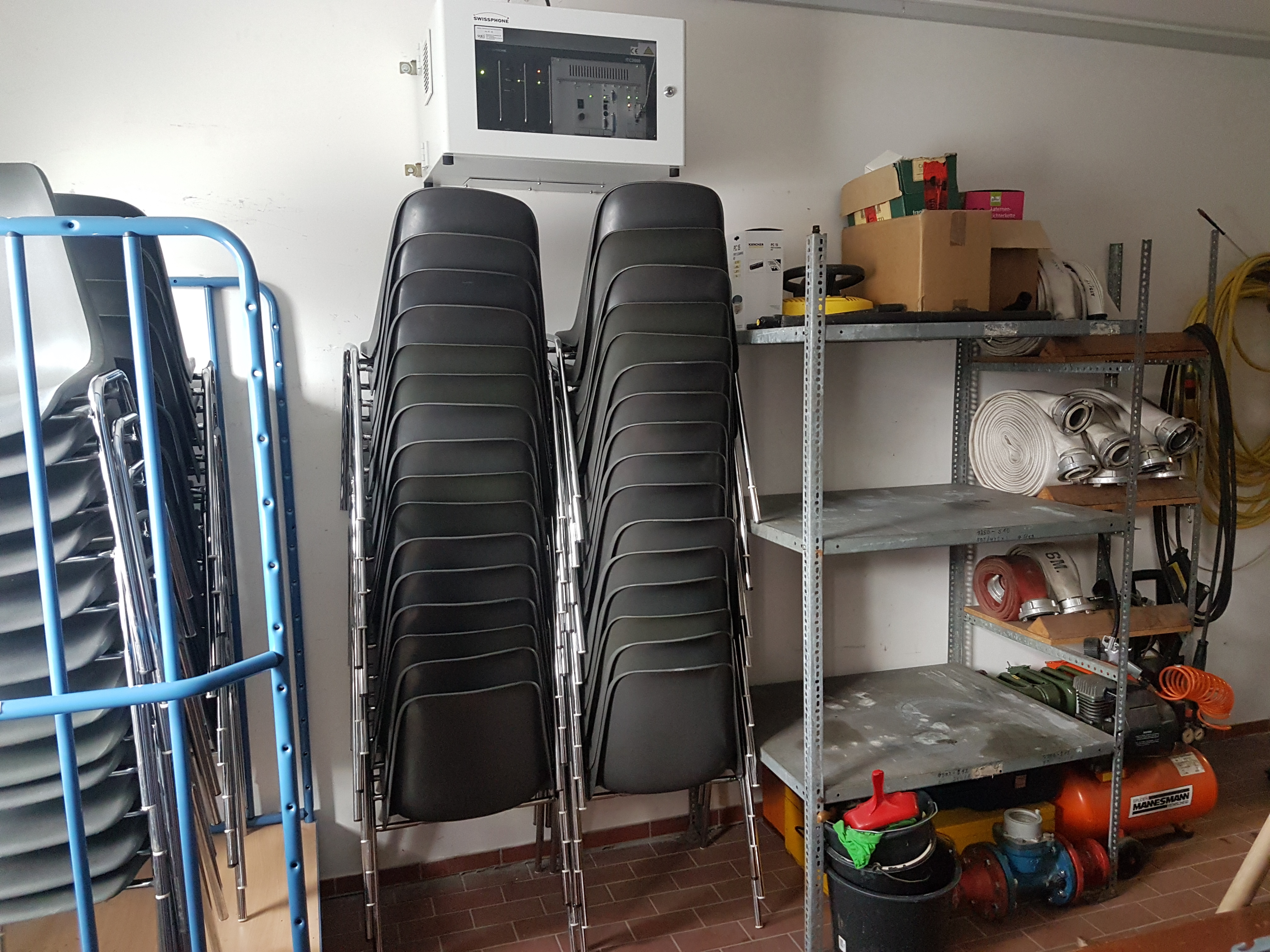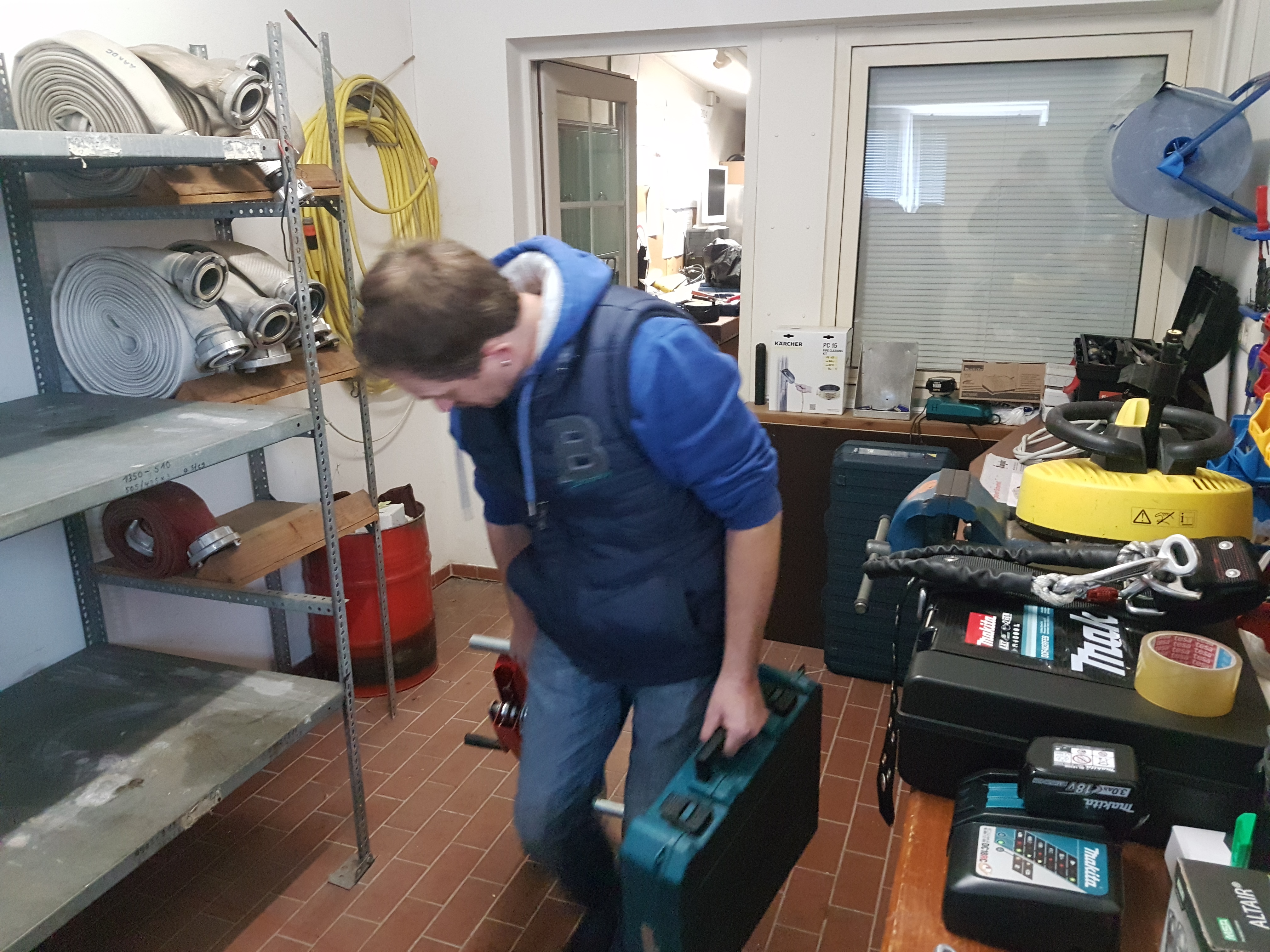 Unsere beiden Gerätewarte Marco und Mathias haben sich die Werkstatt vorgenommen. Sie räumten die komplette Werkstatt einmal leer und sichteten die rausgeräumten Materalien um zu prüfen, was noch benötigt wird und was entsorgt werden kann.